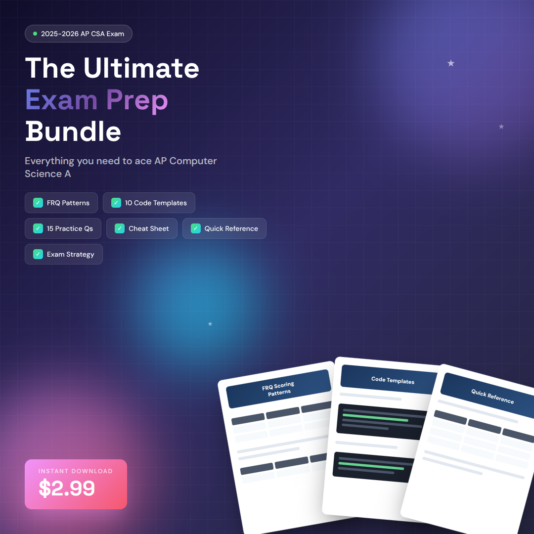 AP CSA Exam Prep PDF Bundle — Cheat Sheet, FRQ Patterns & Practice Questions